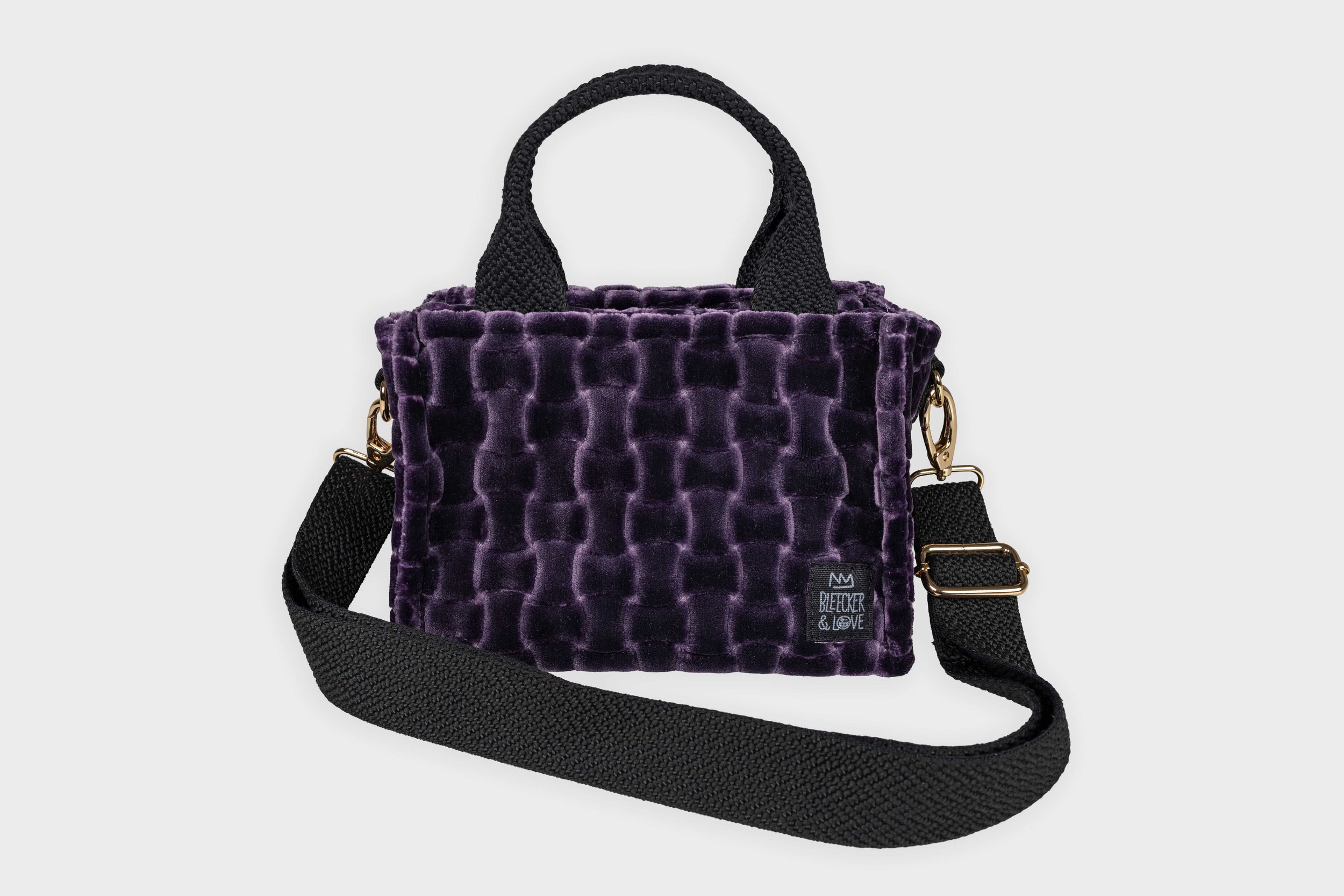 Material: Velvet textile, waterproof lining, cotton straps, metallic hardware, YKK zipper